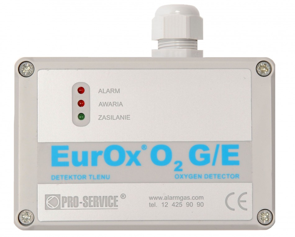 Detektory Tlenu „EurOx.O2 G” przeznaczone są do stosowania w stacjonarnych systemach detekcji obniżania się lub pomiaru stężeń tlenu w powietrzu, poza strefami wybuchowymi. Do współpracy z szeroką gamą centralek i sterowników. Zasilanie 12 V DC.
