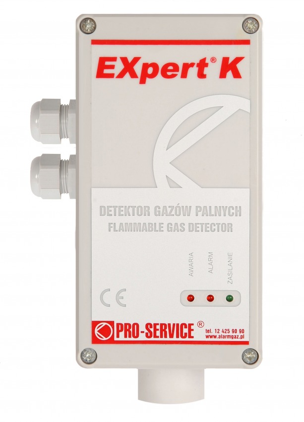 Detektory Gazów Palnych „EXpert K” przeznaczone są do stosowania w stacjonarnych systemach detekcji wysokich (wybuchowych) stężeń gazów oraz oparów cieczy , poza strefami wybuchowymi. Służą do wykrywania różnorodnych gazów i oparów wybuchowych – np.: metanu, LPG, heksanu, pentanu, amoniaku, oparów benzyn i olejów, oparów styrenu, ksylenu, toluenu, octanu etylu, oparów alkoholi.